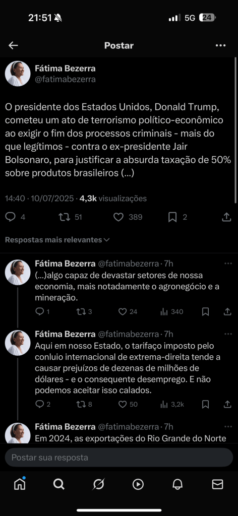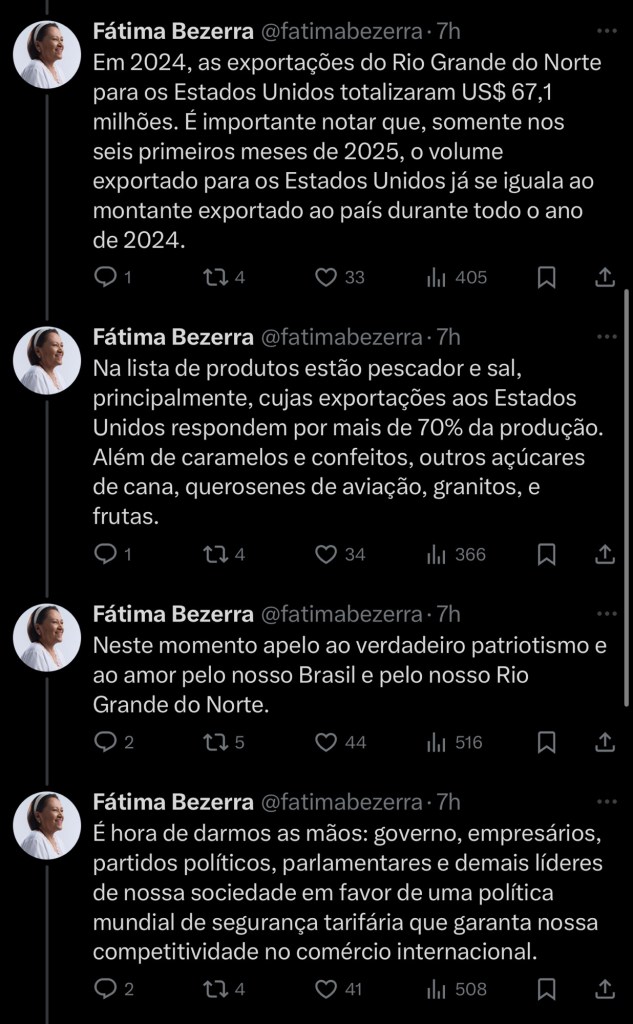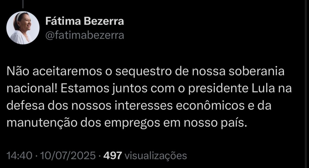A Governadora Fátima Bezerra se pronunciou sobre o tarifaço de Trump, confira