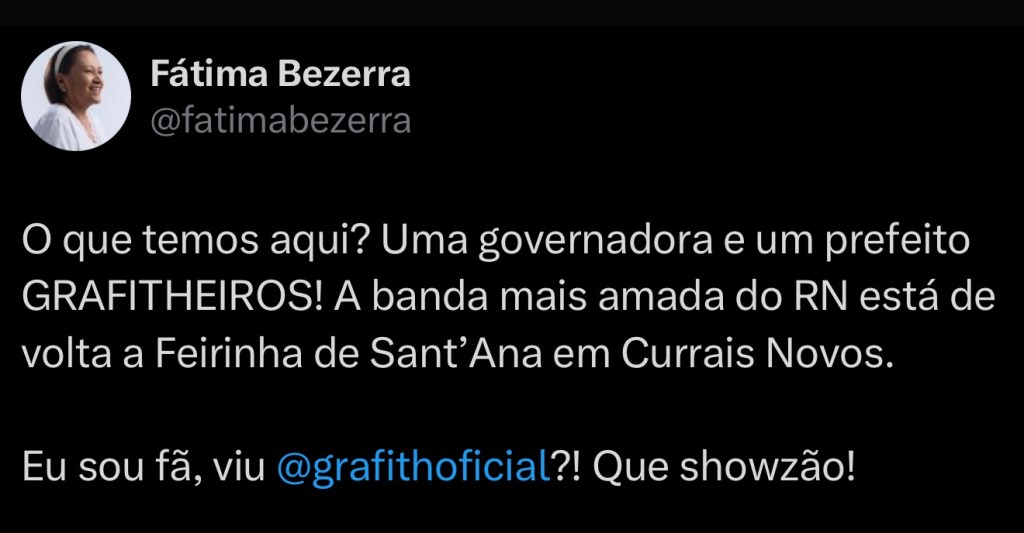 A Governadora Fátima Bezerra está em Currais Novos prestigiando a tradicional Feirinha de Santana, ao lado do Prefeito Lucas Galvão, Fátima curte o show da Banda Grafith.