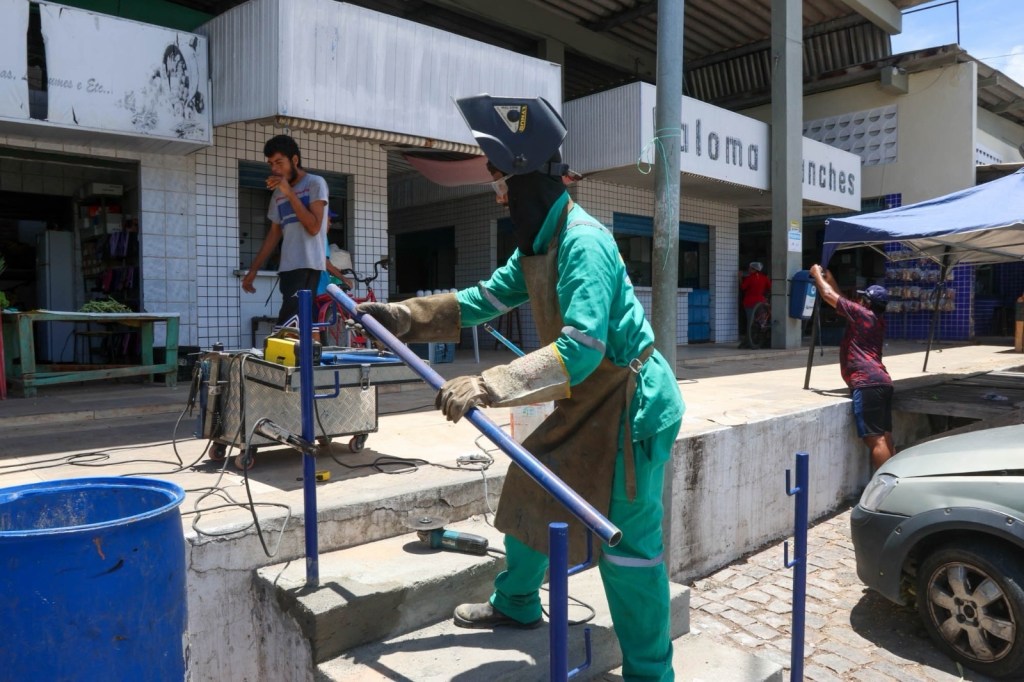 Já no Mercado de Santos Reis, as equipes estão instalando novas luminárias, novos corrimões e fazendo manutenção nos existentes e realizando serviços na estrutura da fossa. As ações fazem parte do cronograma contínuo de melhorias nos espaços públicos da cidade.