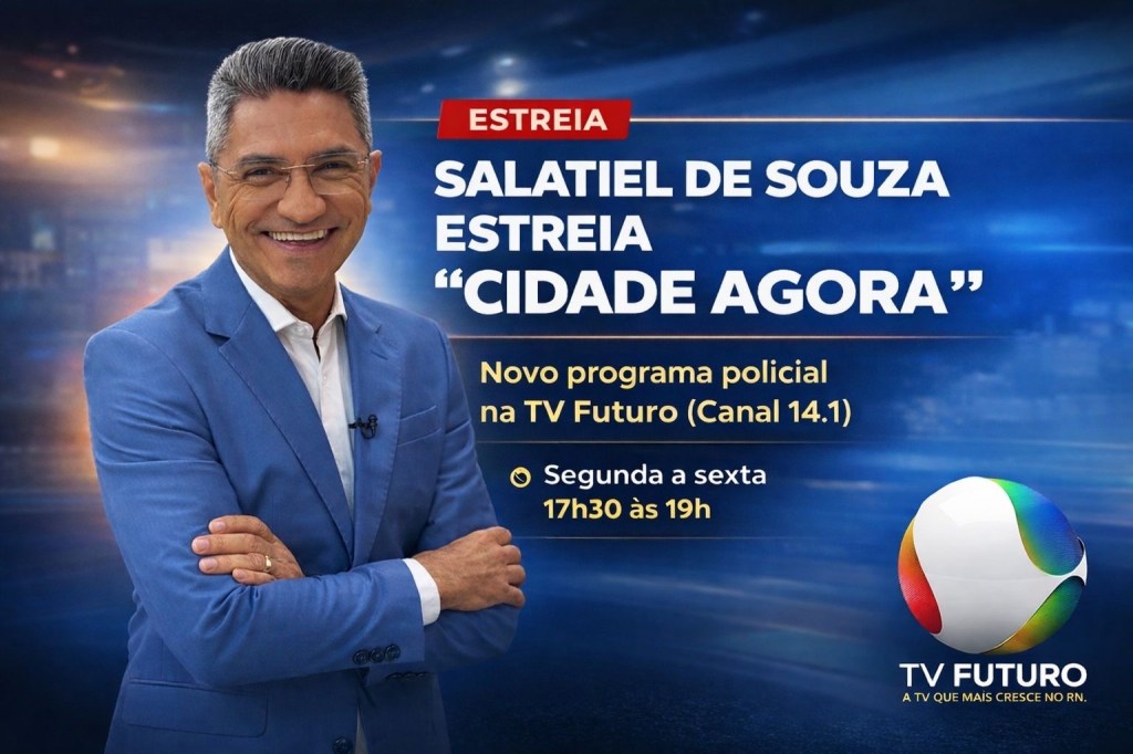 O comunicador Salatiel de Souza estreia na próxima segunda-feira (09) o programa “Cidade Agora”, na TV Futuro (canal 14.1), emissora que retransmite a programação nacional da TV Cultura no Rio Grande do Norte. O programa será exibido de segunda a sexta-feira, das 17h30 às 19h, com foco em jornalismo policial, denúncias da população e cobertura dos principais problemas enfrentados pelas comunidades.