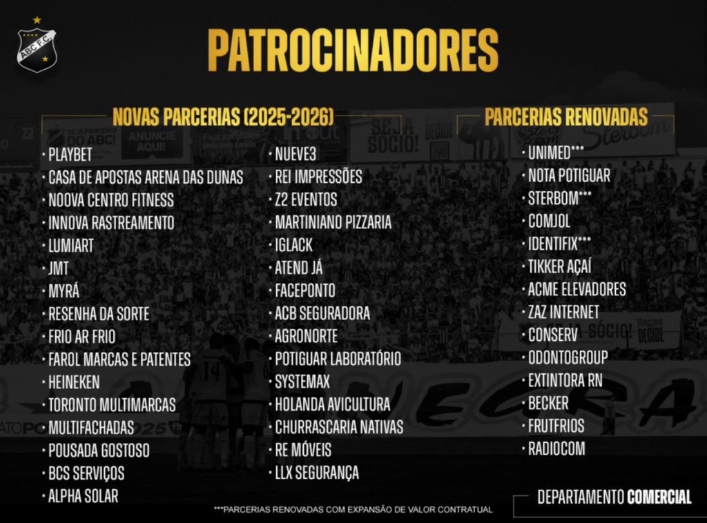 Atualmente, o Departamento Comercial conta com 45 parceiros vigentes, sendo que 31 deles foram firmados no biênio 2025-2026. Entre as novas parcerias e renovações, figuram marcas como Playbet, Unimed e SterBom, esta última com expansão de valor contratual. Esse desempenho reflete em uma receita média mensal de R$ 210 mil, enquanto que a política de contenção de despesas representa uma economia superior a R$ 80 mil mensais.